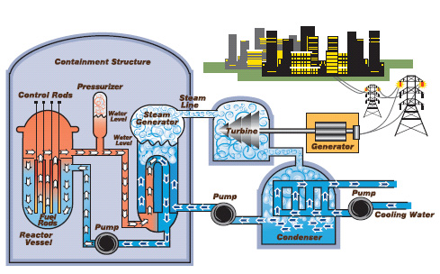 Gambar 2. Skema cara kerja pembangkit listrik tenaga nuklir.