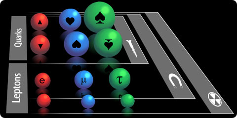 Menurut para ilmuwan, semua materi di alam semesta ini tersusun atas 12 partikel elementer yang tidak dapat dibagi-bagi lagi. Partikel-partikel tersebut dianggap tidak mempunyai struktur lagi, sehingga dianggap berbentuk seperti titik. Keduabelas partikel elementer tersebut dapat diilustrasikan seperti pada Gambar 1 di bawah ini.
